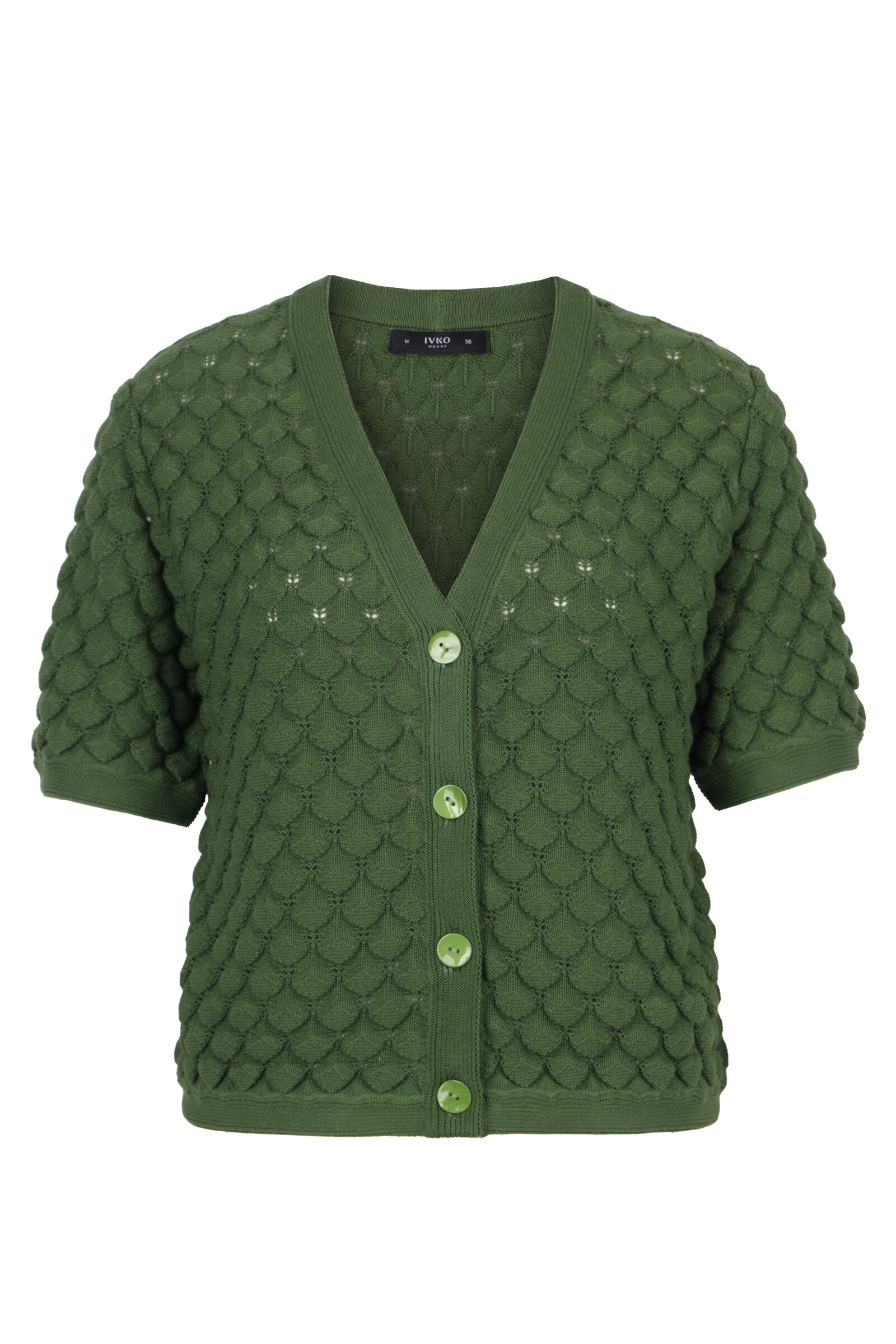 Ein kurzärmeliger Cardigan aus reiner Baumwolle von IVKO Woman in einem erhabenen Struktur Motiv. Textur und Form sprechen für sich in diesem eleganten Sommerlayer. Reine Baumwolle sorgt für weichen Komfort, der mit dem Tragen besser wird.