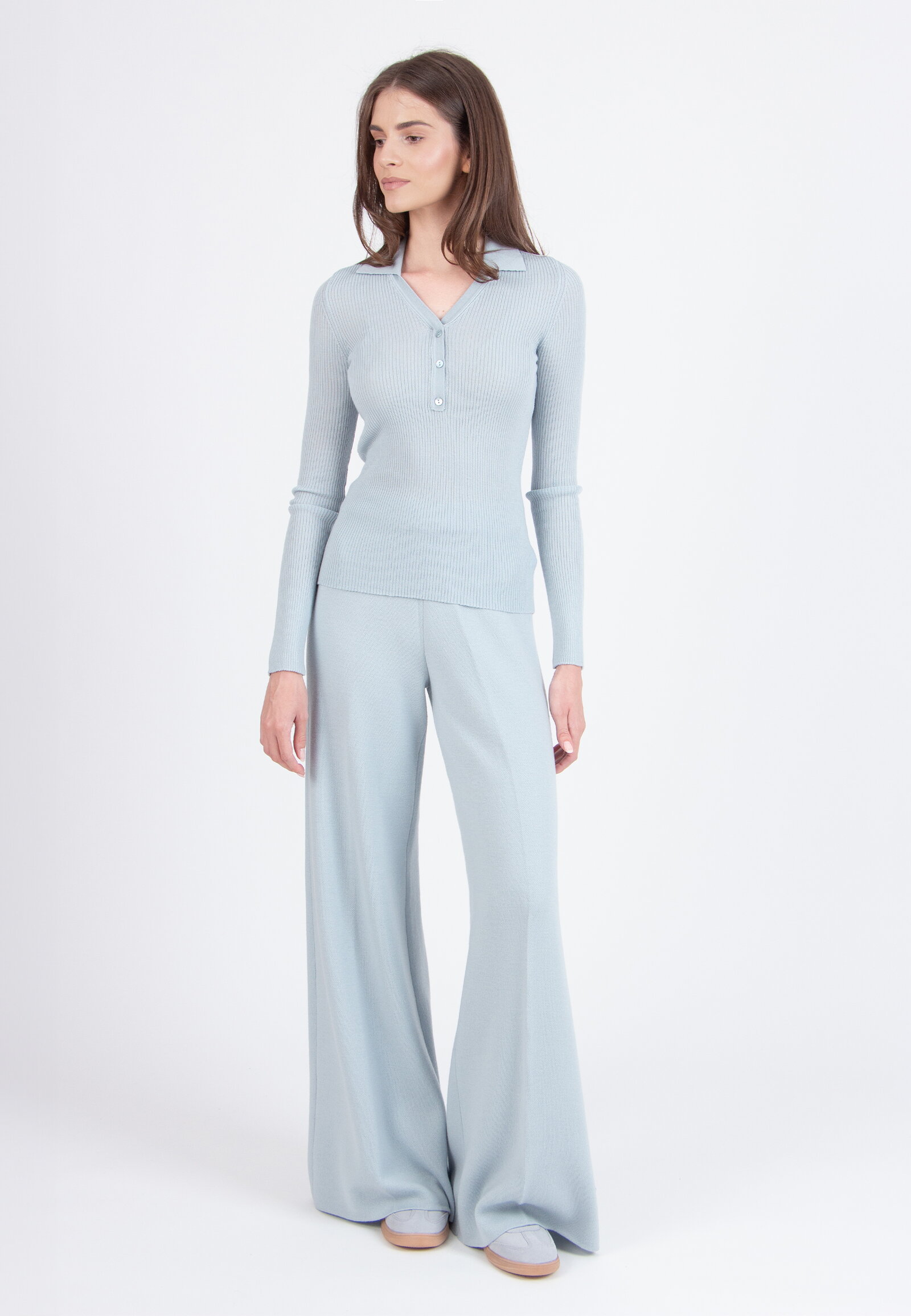 Wollhose mit geradem Bein und klar geformtem Bund. Standardschnitt sorgt für angenehmen Sitz, Strick passt sich an Bewegungen an. Saumabschlüsse bewahren den makellosen Look.